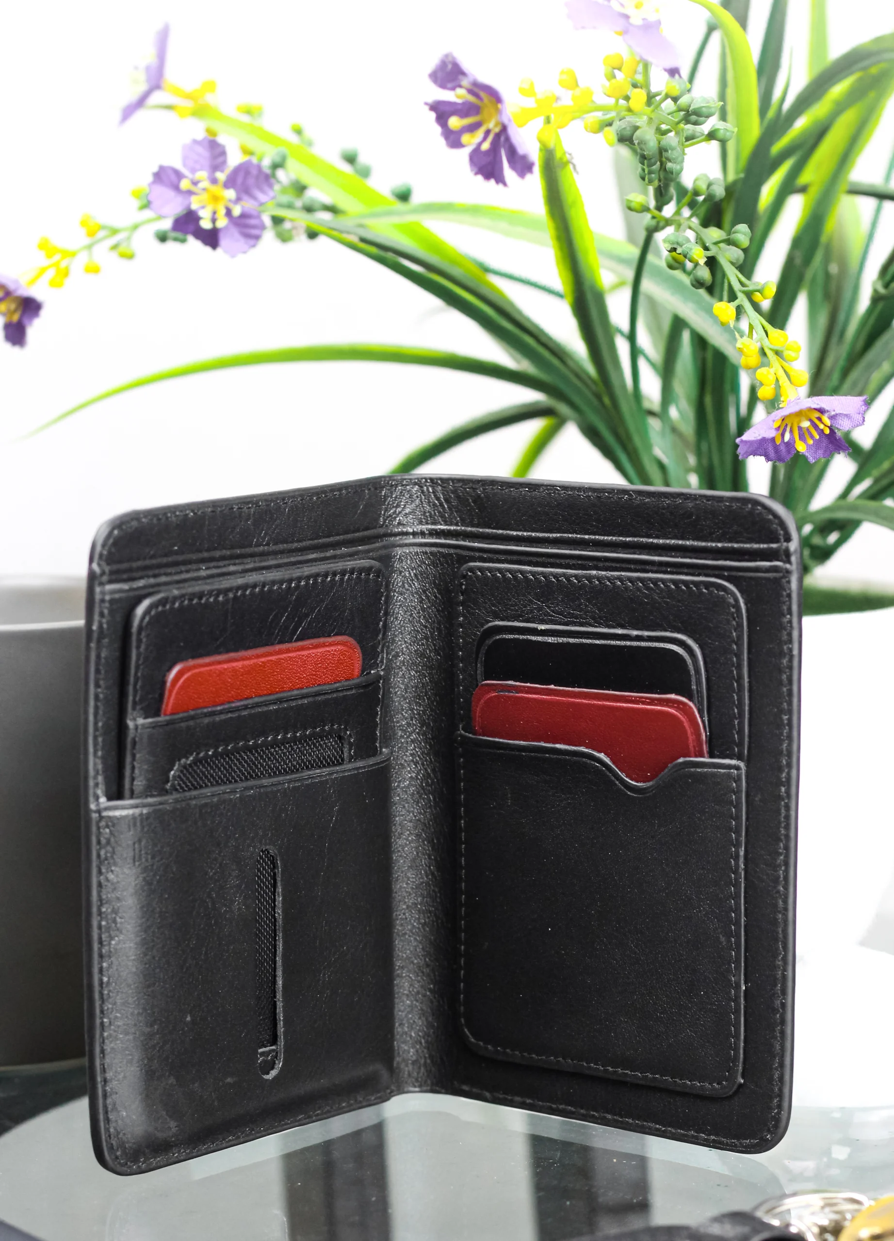 - Inside: Double Chamber, 2 Bill Slots, 4 Card Holders, 1 Coin Pocket